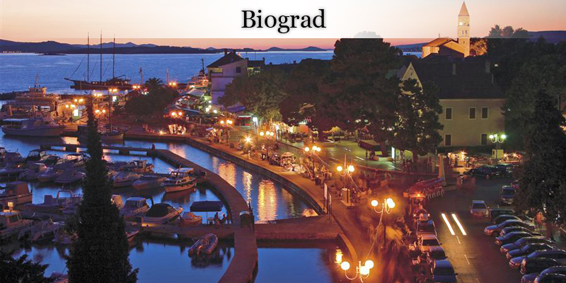 Biograd na Moru jelentése magyarul "A fehér város a tenger mellett". A városnak lényeges magyar vonatkozása az, hogy itt koronázták meg Könyves Kálmán királyunkat - Tengerfehérváron. Az egykori horvát királyi város ismert idegenforgalmi és hajós központ az adriai partszakasz közepén. A nemzeti parkok (Kornati, Paklenica, Krka vízesés, Plitvicei-tavak) karéjában, valamint Zadar, Šibenik és Nin történelmi városok közelségével felejthetetlenné teszi az Ön horvát adriai tartózkodását. A város központjától csupán pár száz méternyire fürdőzhetünk a tiszta és áttetsző tengerben, míg a magányra és nyugalomra vágyókat a közeli Pašmani-csatorna erdős szigetei várják. Két korszerűen felszerelt jachtkikötője teszi Biogradot a világ minden részéről érkező hajósok kedvelt találkozóhelyévé.